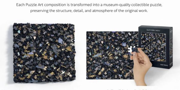 Each collectible puzzle begins as a physical Puzzle Art composition constructed in the studio. As the image is assembled piece by piece, the viewer retraces the act of reconstruction — time, structure, and touch becoming part of the work itself.